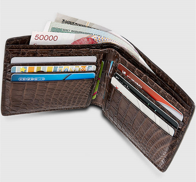 Fashion Bifold Genuine Crocodile Wallet-Brown